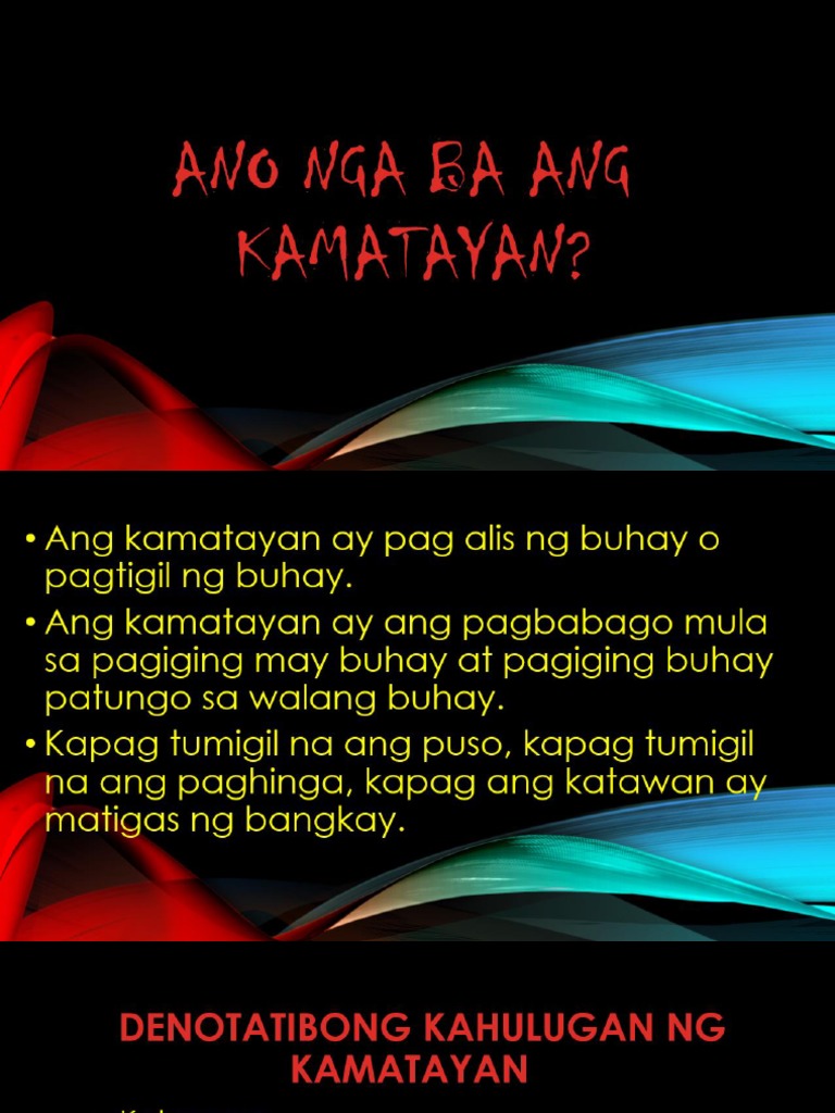 2 thoughts on KONOTATIBO Claud Giron says. You know the right answer. Pwede ring sabihin na ang kamatayan ay kabaligtaran ng buhay.