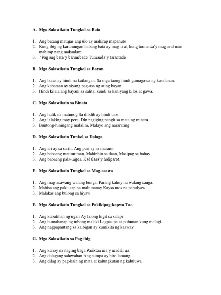 Beyond this we should also demand action. Halimbawa ng Salawikain 4. Halimbawa ng Salawikain 3.
