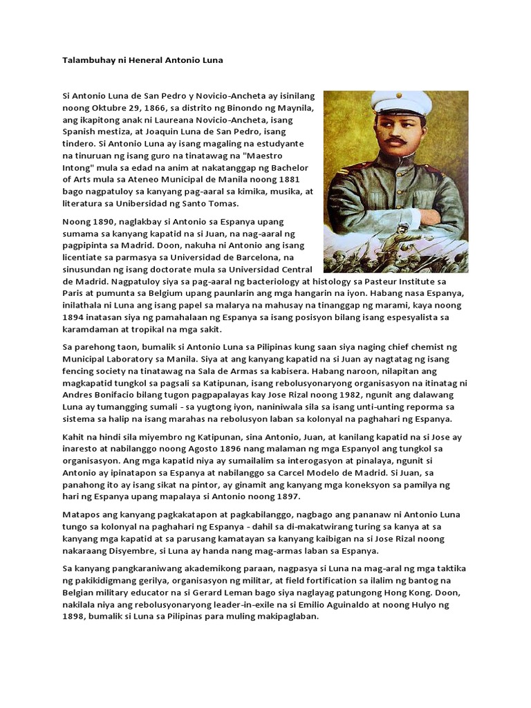 Talambuhay Ni Heneral Antonio Luna Talambuhay Ng Mga Bayani Ng Pilipinas