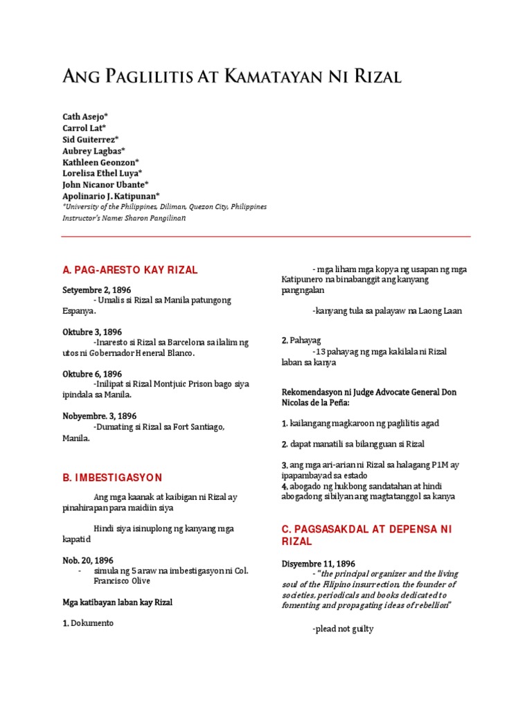 Paglilitis At Pagpatay Kay Dr Jose Rizal Written Report