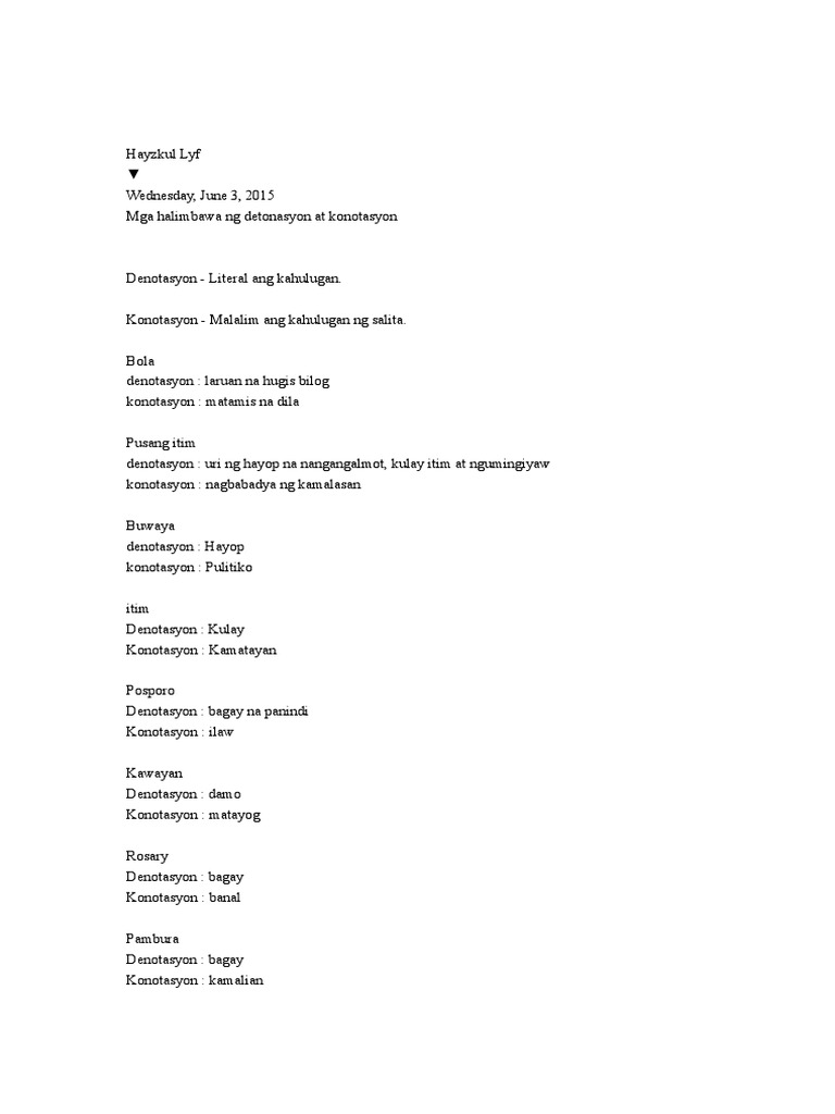 1332021 Denotatibo at konotatibong kahulugan filipino 9for more updates click my facebook page. Paghihirap Kamatayan Langit Pataynote kung ano lang ang alam nya sa apat. November 1 2020 at 343 pm.