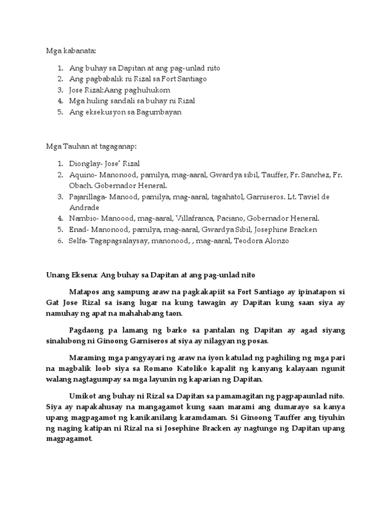 His mother Doa Teodora was well-educated a rare quality among women in those times. 1832012 Mga Huling Oras ni Rizal December 29 1896 ang huling 24 oras ng buhay ni Rizal600AM Si Kapitan Rafael Dominguez na inatasang mamahala sa paghanda ng pagbitay kay rizal ay ang siyang nagbasa ng napagdesisyunang hatol sa kanya na kamatayan. 7 Example sentences created by professional Filipino teachers and writers.